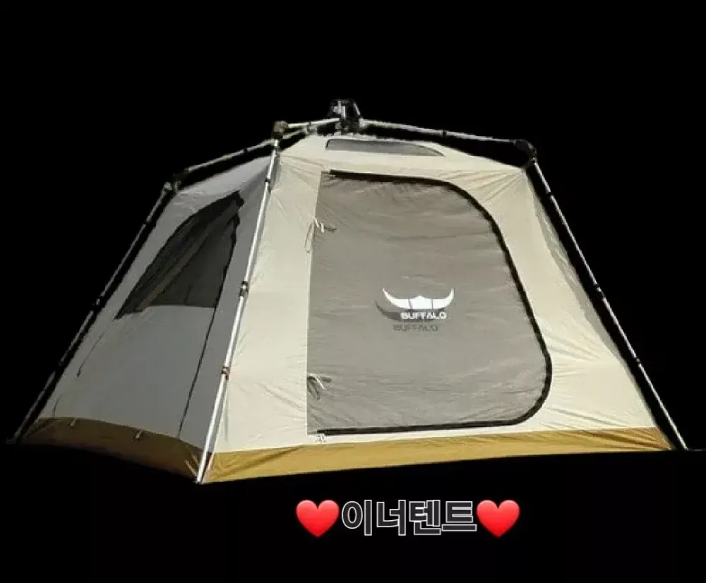 [새상품] 버팔로 오토 시크 오토텐트 5~6인용 입니다. 색 상 : 아이보리그레이 품 명 : CTE0033IV 구성품 : 이너텐트, 이어텐트 전용 그라운드시트, 플라이, 폴대팩, 스트링, 보관가방 중 량 : 약 22kg - 정방향 이너텐트 : * 이너텐트 랜턴 걸이 * 천장에 훅을 이용해 메쉬 주머니를 달수 있어요 * 내부공간 활용 극대화, 시원한 실내 * 이너텐트 전용 그라운드시트 제공 - 확장형 전실로 넉넉해진 전실공간 * 긴 터널형의 넓은 내부 공간 * 후면, 측면의 연장 그늘막 설치가능한 업라이팅 플라이 * 플라이 좌, 우에 벤틸레이션(통풍구) 설치로 결로현상 최소화 * 루프탑 메쉬창 적용(4면 오픈 구조로 쾌적한 환경 제공) * 이너 케이블 가이드로 텐트 전면에 전기선 정리하기 편리 * 이너 배부 포켓 제공으로 작은 소지품 수납에 편리