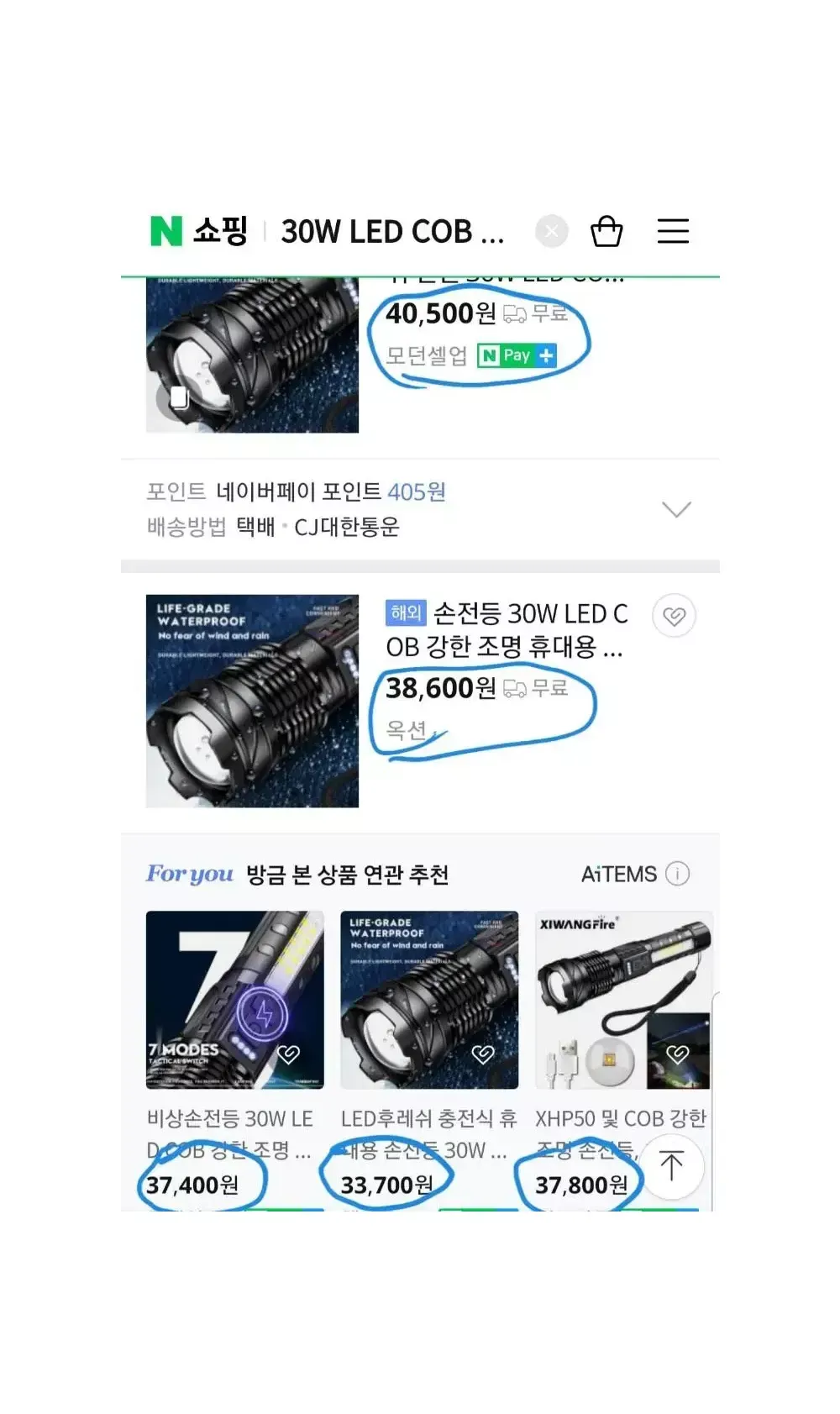 (초특가)30w LED랜턴.XHP50.손전등.해루질.낚시.후레쉬.렌턴 요약정보 및 구매