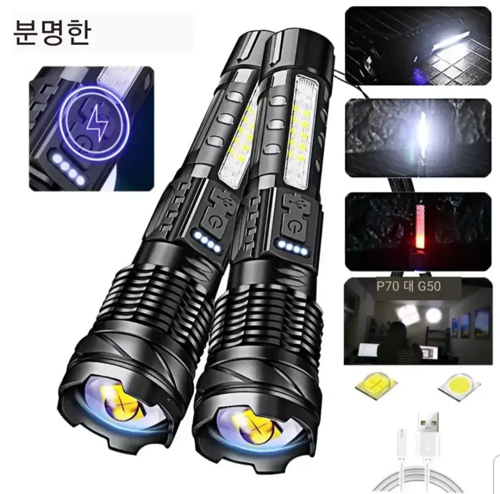 30W 손전등. XHP50 칩사용.(새상품) ●USB충전,내장형 밧데리라 쓰시기 편하며 (밝기 실사진입니다. 진짜로 엄청 밝습니다) ●가격대비 진짜 엄청난 제품입니다.# 온라인에선 비싸게 팔리는 제품입니다. 후회할일 절대 없습니다. ●전 개인적으로 XHP70보다 밧데리 걱정없는 이걸 더 좋아합니다. ●(줌기능) 되구요, 허리 걸고리 있고 사이드 등이 있어 캠핑, 낚시등 사용 편합니다. ●판매자 헤드렌턴,손전등,구경하고 가세요