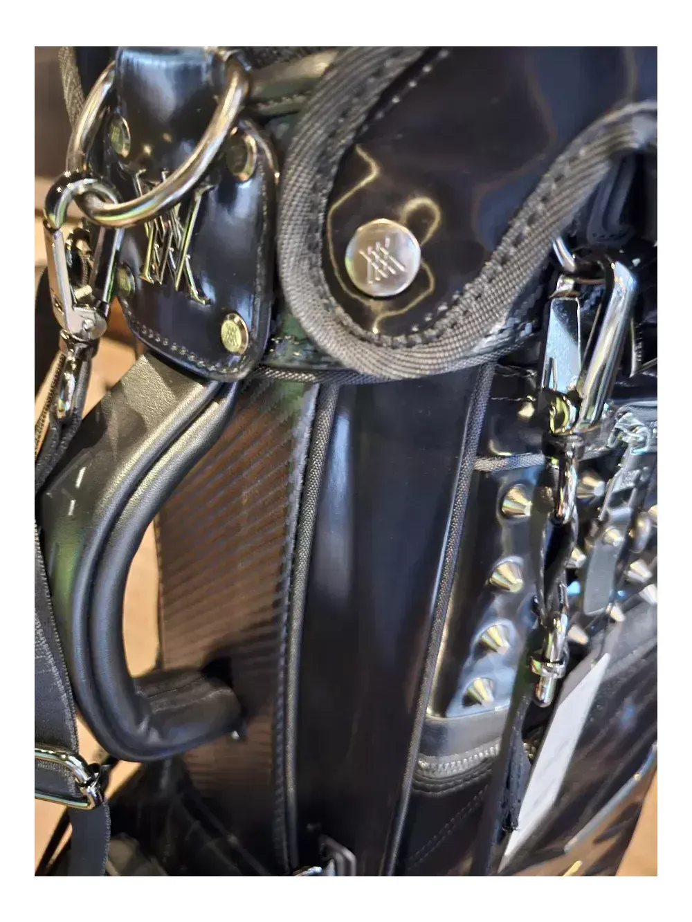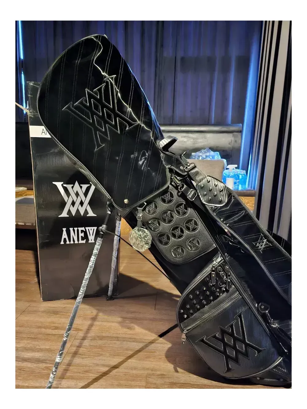 어뉴 한정판 블랙에디션 스탠드 골프백 일본정품.병행수입. 새상품. 남여공용 오프라인매장, 로드매장 등에 전시했던 진열삼품으로, 철저한 관리로 새상품과 다르지 않습니다. 어뉴공홈에서는 판매가 99만8천으로 최고가백이었지만, 최근 품절되어 구매가 어렵습니다. 안전결제하시면 정품박싱 그대로 드립니다. 통상 오후2시 이전에 결제하시면 1~2일이면 받아보실 수 있습니다. 블랙에디션 샤이닝 라인은 벨벳이 아닌 수입특수원단으로 스크레치, 기스 등에 강하며 습기에도 탁월합니다. 또한, 모델명 그대로 빛을 받으면 반짝반짝 트윙클하고 빛나는 효과가 고급스러워 어디에서도 눈에 확 띕니다. 중량은 6kg대이며, 아주 튼튼하고 렉은 부드럽습니다. 본품 외에 후드커버, 투명후드커버, X자 어깨끈, 일자 어깨끈, 아크릴 네임텍 이 있습니다.