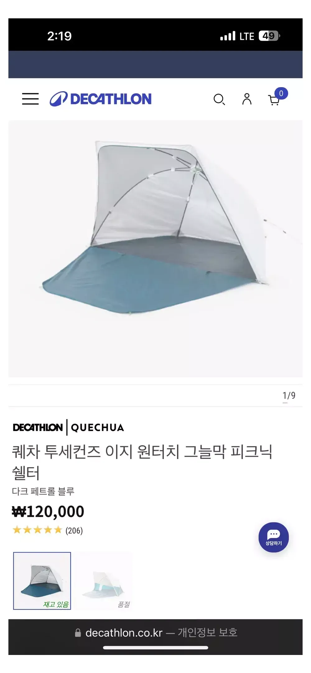 데카트론 2초텐트