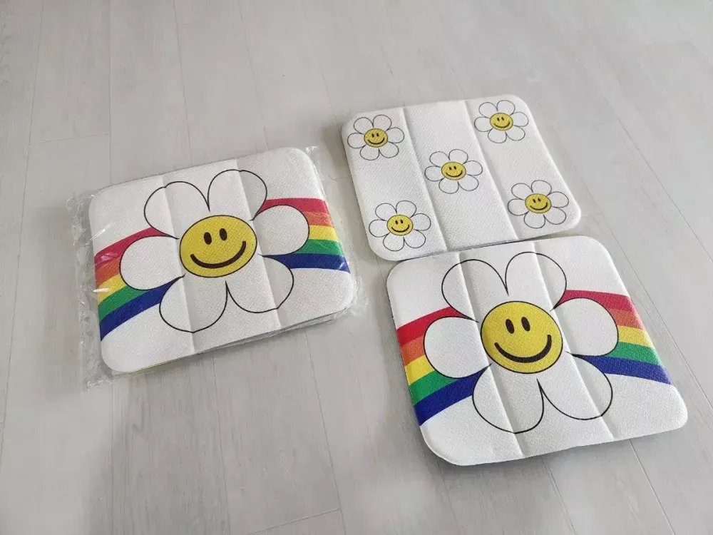 왼쪽 미개봉 새상품 판매합니다. 오른쪽꺼는 양면 보여드리기 위해 제꺼 같이 사진 찍어요 :) 위글위글 매트 가을 피크닉 갈때 쓰세요 :)