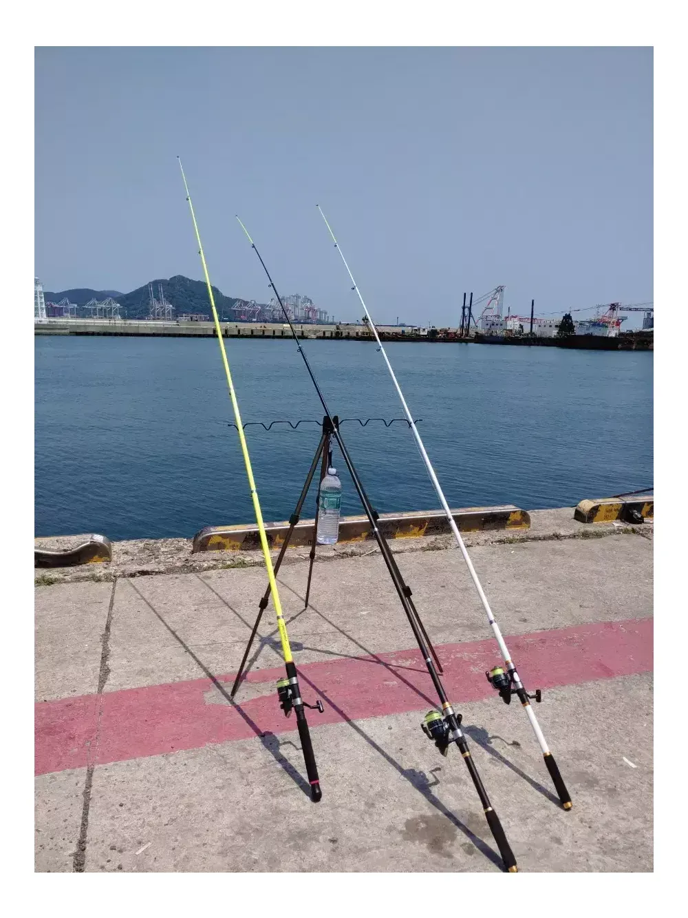 고급 3단 거치대+물통걸이 같이 드립니다 (둘다 새거입니다) 바닥에 낚시대 놓고 사용하시면 낚시대, 릴, 기스 다나고 허리도 계속 숙여야 하고 채비할때도 엄청 불편합니다 거치대 있으면 낚시할때, 낚시대 거치할 수 있어서 엄청 편합니다, 허리도 숙익일 거의 없습니다 낚시대 7대 거치가능하고, 3단 펼치면 110cm로 길어집니다 다리 연결부위 쉽게 조작할 수 있고, 금속재질이라 아주 튼튼하고 견고합니다 거치대 균형잡을수 있게 물통걸이 같이 드립니다 물통걸이에 생수통 달아서 거치대 아래에 매달아 놓으면 무게추 역할 하기에 아무리 바람 세게 불어도 쓰러지지않습니다 (거치대 무게추 따로 구매하려면 2만원정도 합니다) 보통 거치대 아래에 두레박 걸어 놓는데, 물통걸이 하나로 편하게 거치대 무게 균형 잡을수 있습니다
