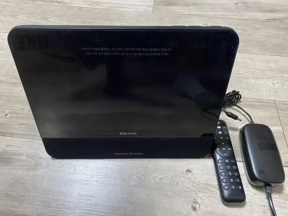 기가지니 테이블TV 판매합니다 전면비닐도 제거도 하지않아 컨디션 괜찮습니다 요즘 기가지니티비로 개조해서 사용도 가능하고 하만카돈 스피커내장으로 사운드도 괜찮습니다 구성품은 본체 , 리모컨 , 전원아답터 입니다 번톡 주시면 연락 드리겠습니다